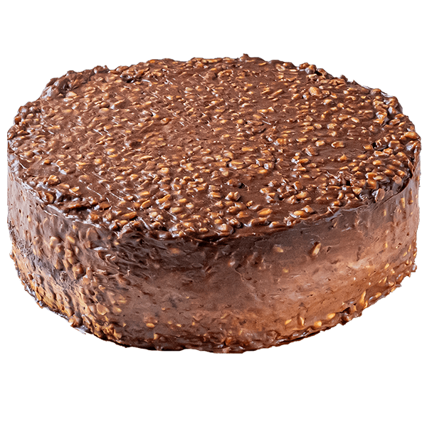 Шоколаднo-бисквитные коржи, арахис с карамелью. Прослойка кремчиз и залит торт шоколадным ганашем и арахисом.